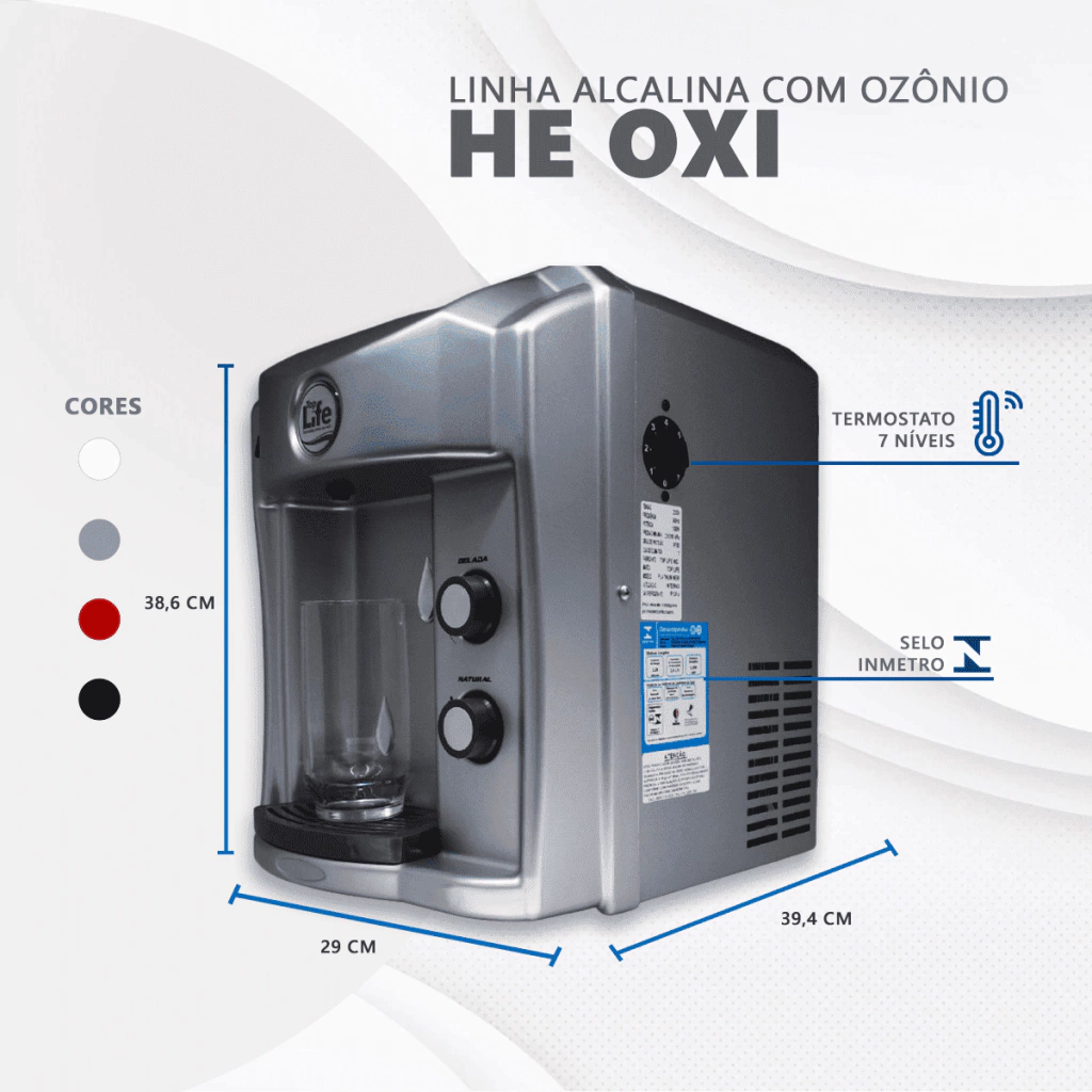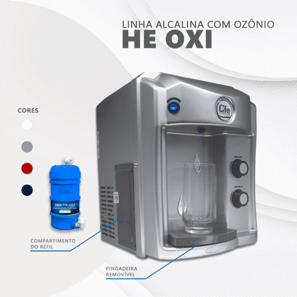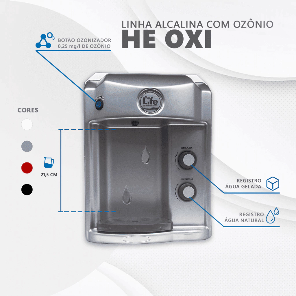 Purificador de Água Gelada e Natural Top Life - Modelo HE OXI – Linha Alcalina Com Ozonio
