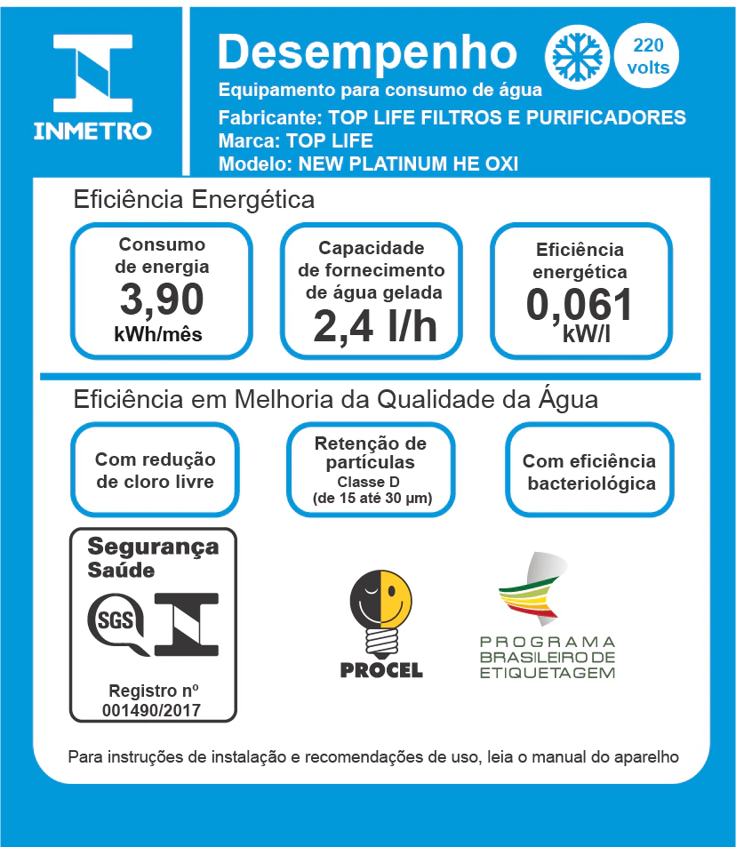EFICIÊNCIA ENERGÉTICA (KW/L) 127 V - 0,049