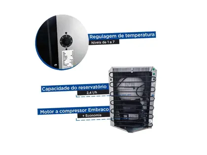 CAPACIDADE DE REFRIGERAÇÃO COM AMBIENTE A 32ºC E A ÁGUA A 27ºC - 2,4 l/h