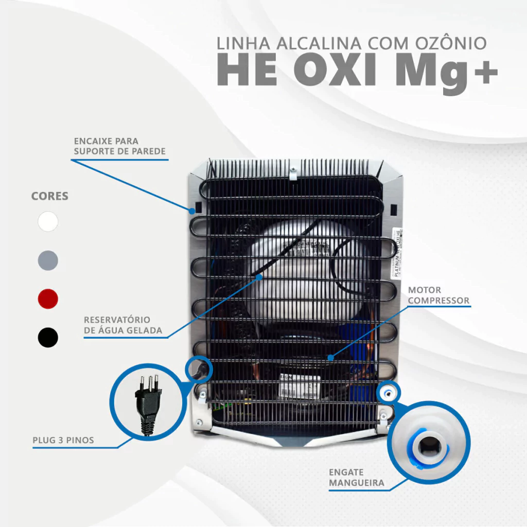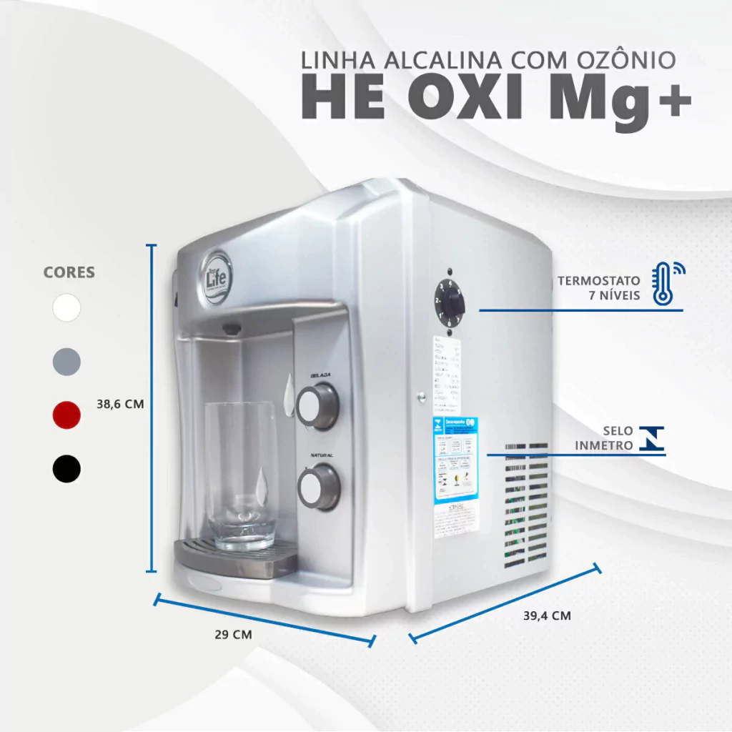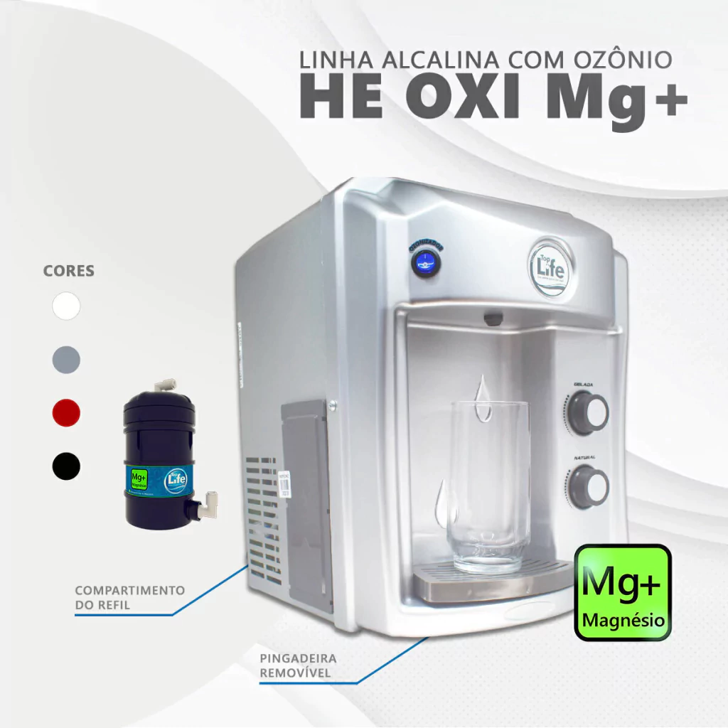 - O purificador HE OXI Mg+ da TOP LIFE não é apenas um filtro, ele é uma supermáquina capaz de deixar a água purificada, alcalina (com adição extra de Magnésio), ionizada, refrigerada e ozonizada.